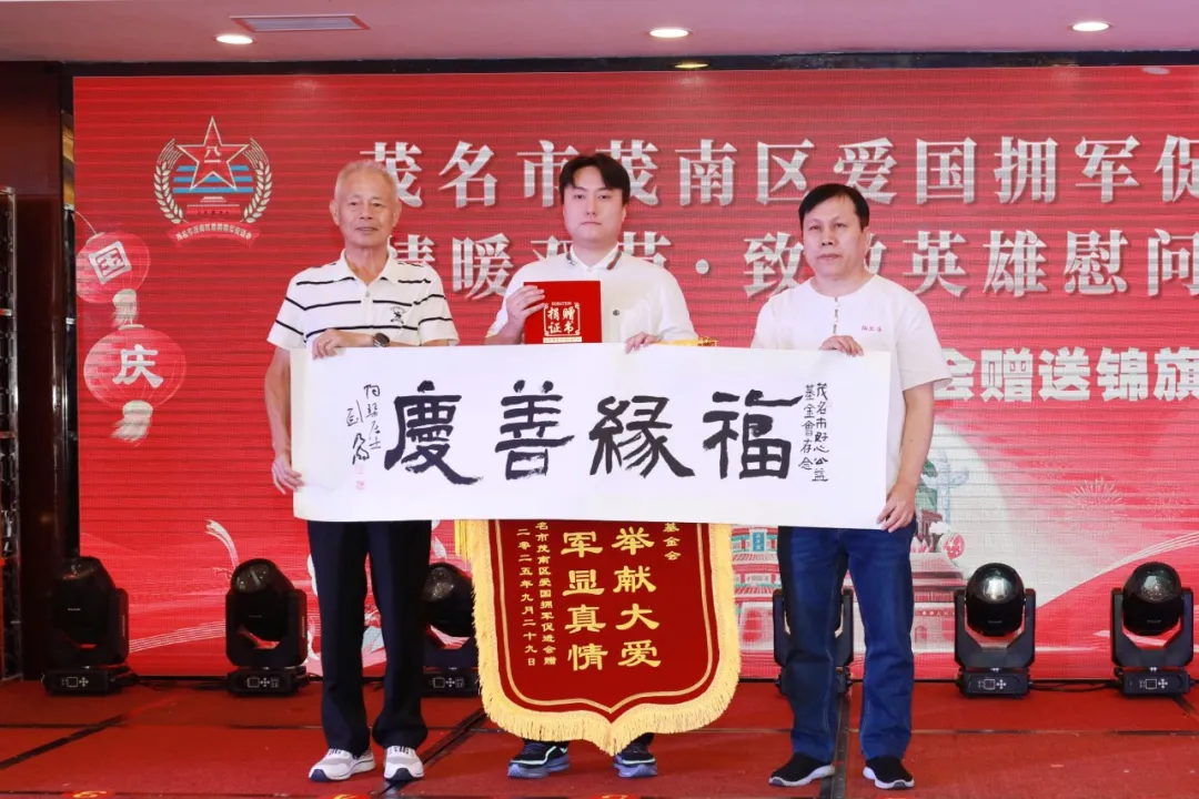 中秋月满,家国同庆。近日,茂南区爱国拥军促进会“情暖双节、致敬英雄”慰问活动在茂名国际大酒店举行。环宇公司执行董事、茂名市好心公益基金会会长吴欣泽出席活动,并向茂南区爱国拥军促进会捐赠人民币30万元。据悉,该笔善款将专项用于老兵慰问、烈士家属及困难退役军人帮扶。